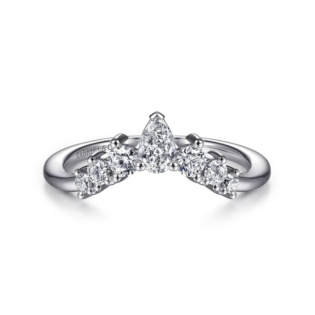 14K White Gold Curved Pear Shape and Round Diamond Anniversary Band