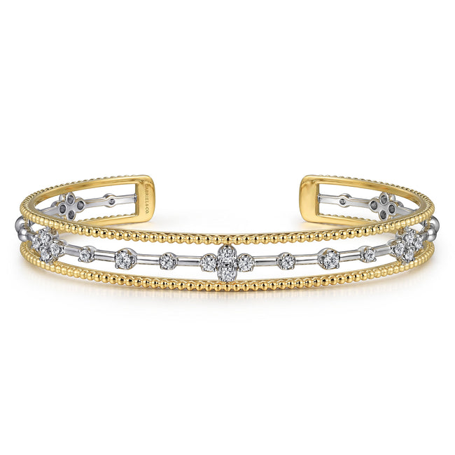 14K White and Yellow Gold Diamond Bujukan Cuff Bangle