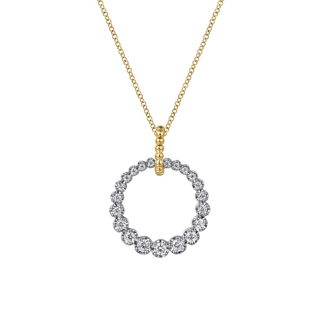 14K White and Yellow Gold Diamond Bujukan 20mm Drop Necklace