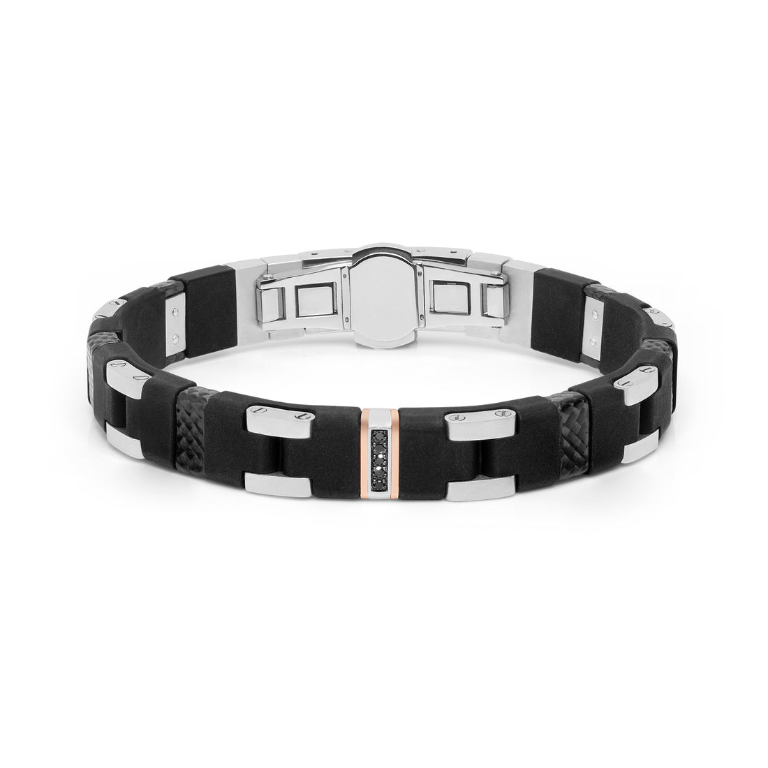 Bracelet. Rose gold 750‰. Argento 925‰. Black diamonds P.Ct. 8. Carbon Fiber. Stainless steel. Black...