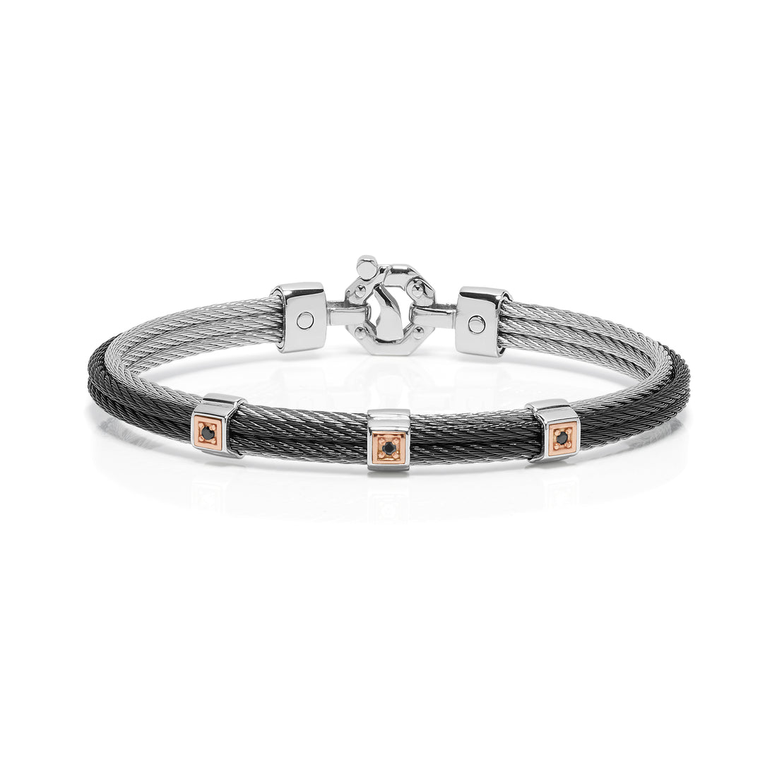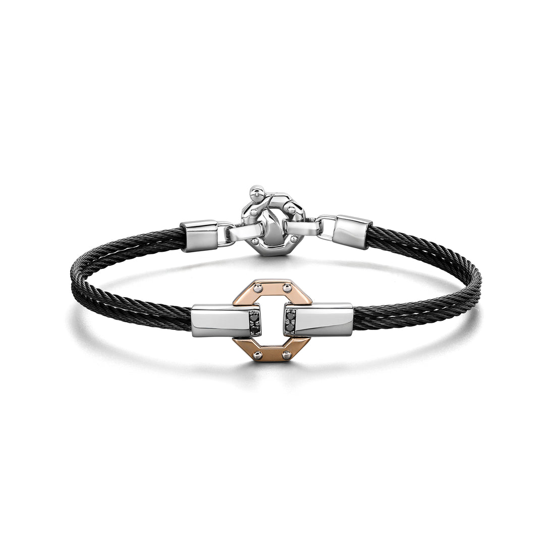 Bracelet. Rosè gold 750‰. Stainless steel. Black PVD. White Diamond P.Ct 2