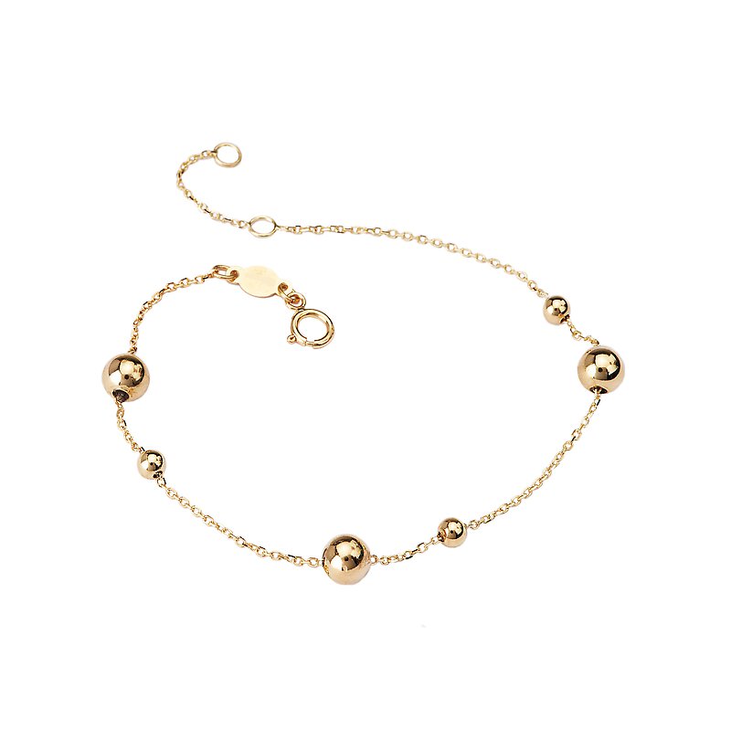 Italian 14kt yellow gold chain bracelet features 3 and 5 mm gold beads sprinkled through...