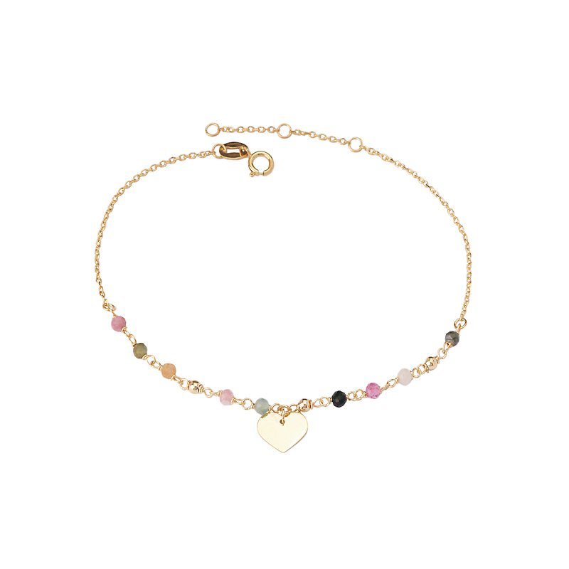 Italian 14kt yellow gold chain bracelet is spaced with multi-colored tourmaline beads and features a...