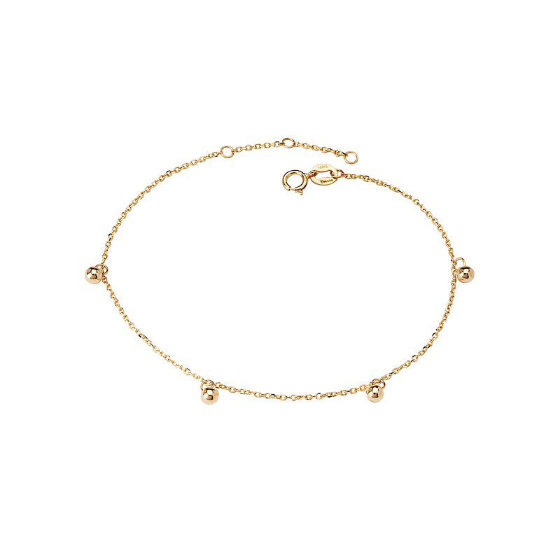 Italian 14kt yellow gold chain bracelet features 4 stations of dangling bead balls. Adjustable 6.5...