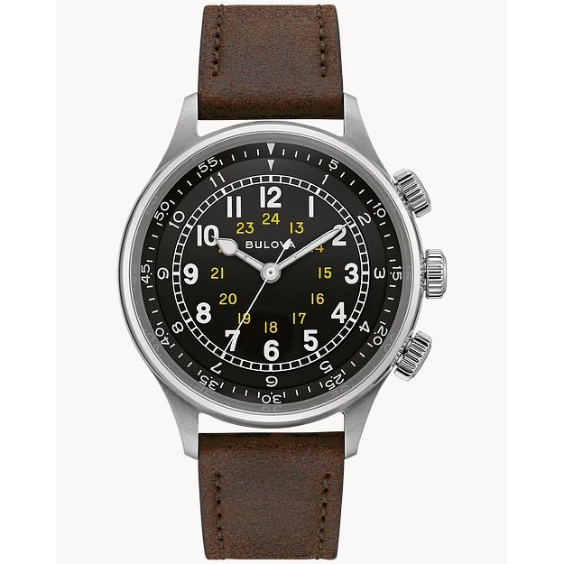 Bulova watch. A-15 Pilot Military in stainless steel case. Synthetic sapphire crystal. 42mm case. Black...