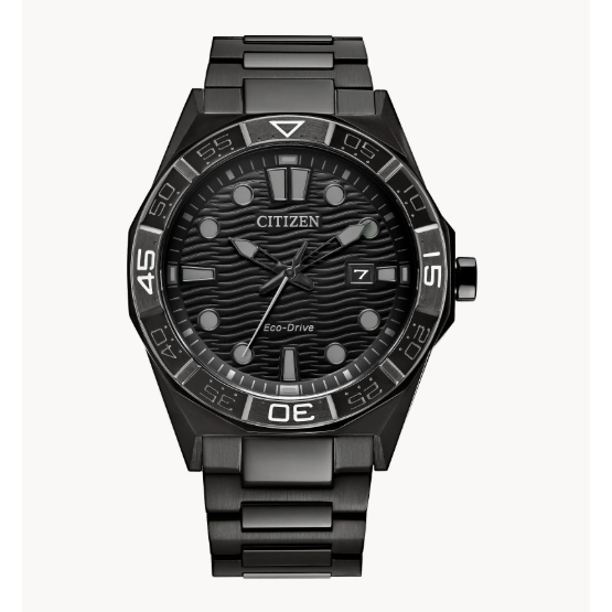 Citizen watch. Brycen. 42mm case diameter. Black stainless steel case and bracelet. Synthetic sapphire crystal....
