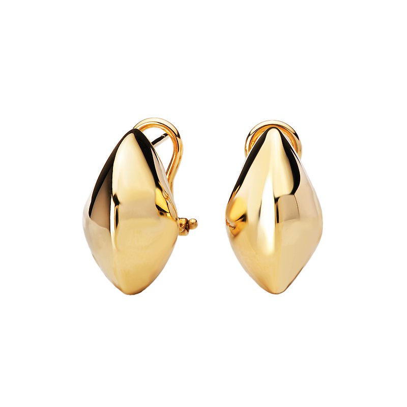 Italian 14kt yellow gold hollow drop shapped earrings with a high polished front and omega...