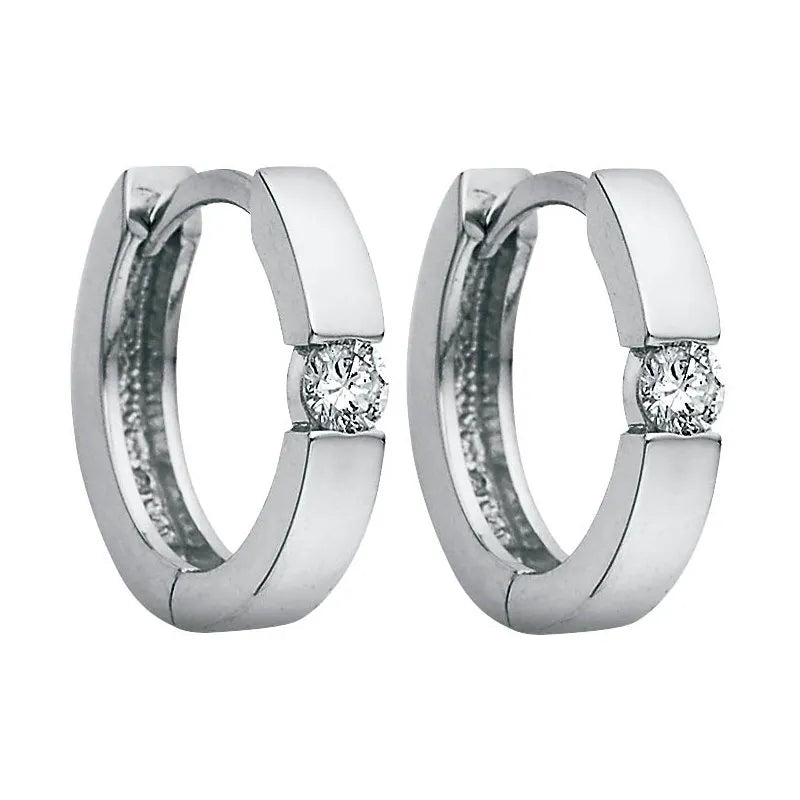 10 karat Canadian Certified Gold round diamond hoop earrings set with 0.05 carat total weight...
