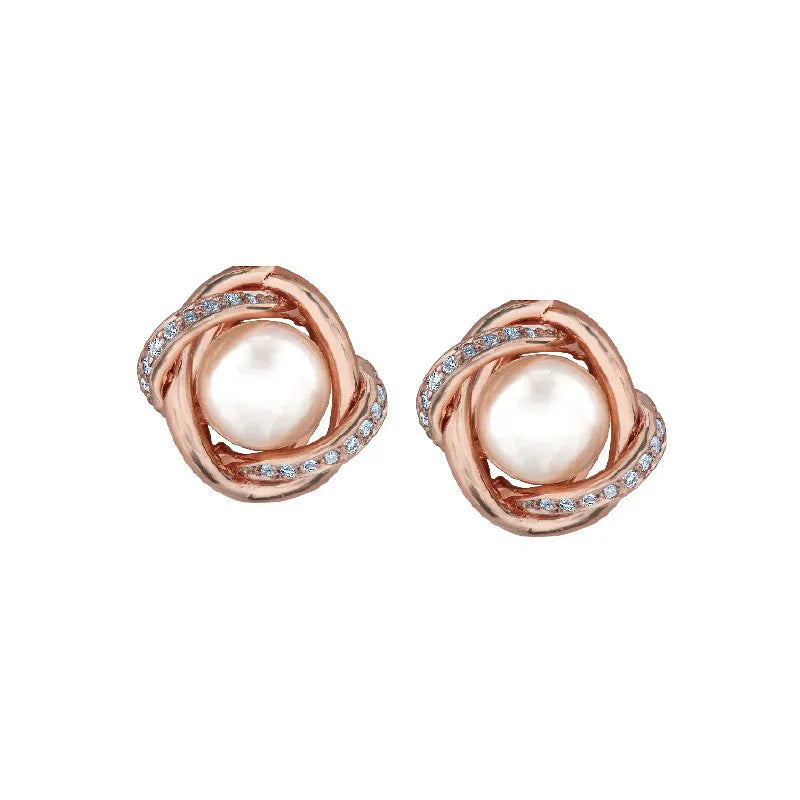 10 karat Canadian Certified Gold pearls earrings set with pearls and 0.10 carat total weight...