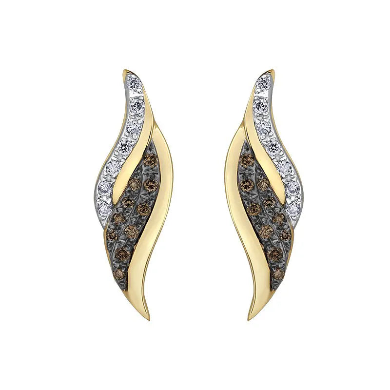 10 karat Canadian Certified Gold nat brown diamond earrings set with 0.15 carat total weight...