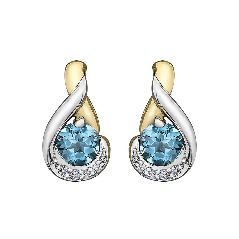 10 karat Canadian Certified Gold blue topaz earrings set with blue topaz and 0.05 carat...