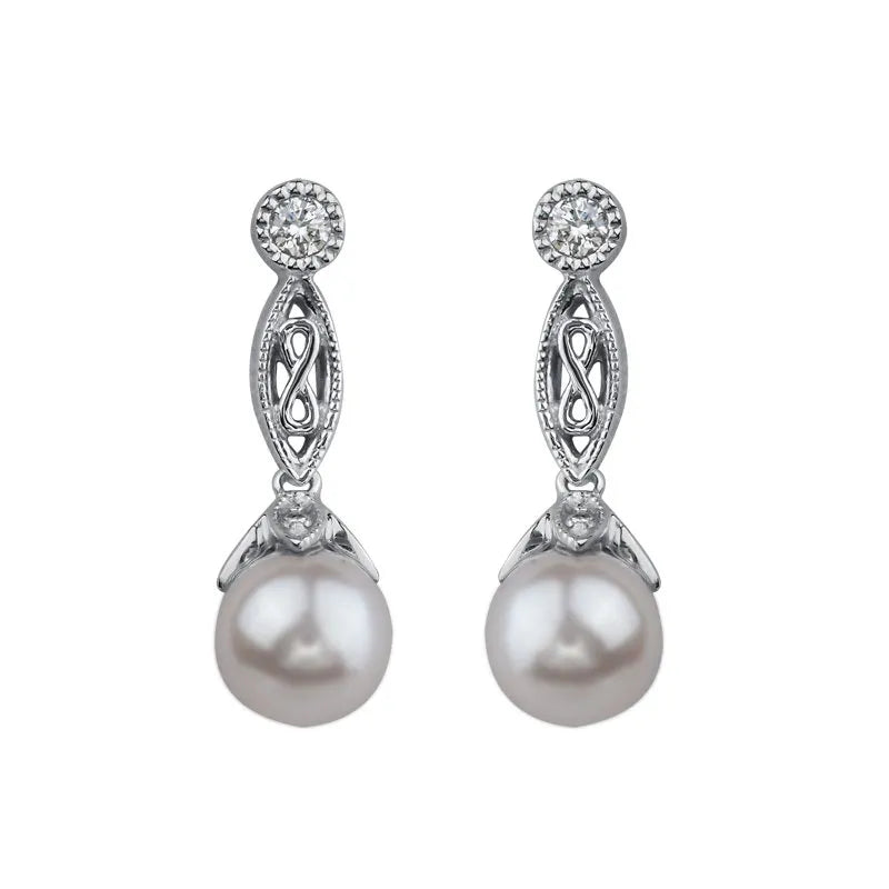 14 karat Canadian Certified Gold pearls earrings set with pearls and 0.09 carat total weight...