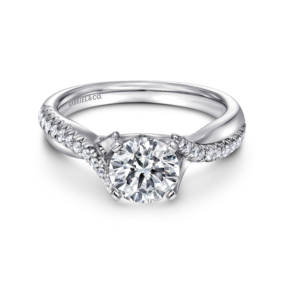14K White Gold Hidden Halo Round Diamond Engagement Ring