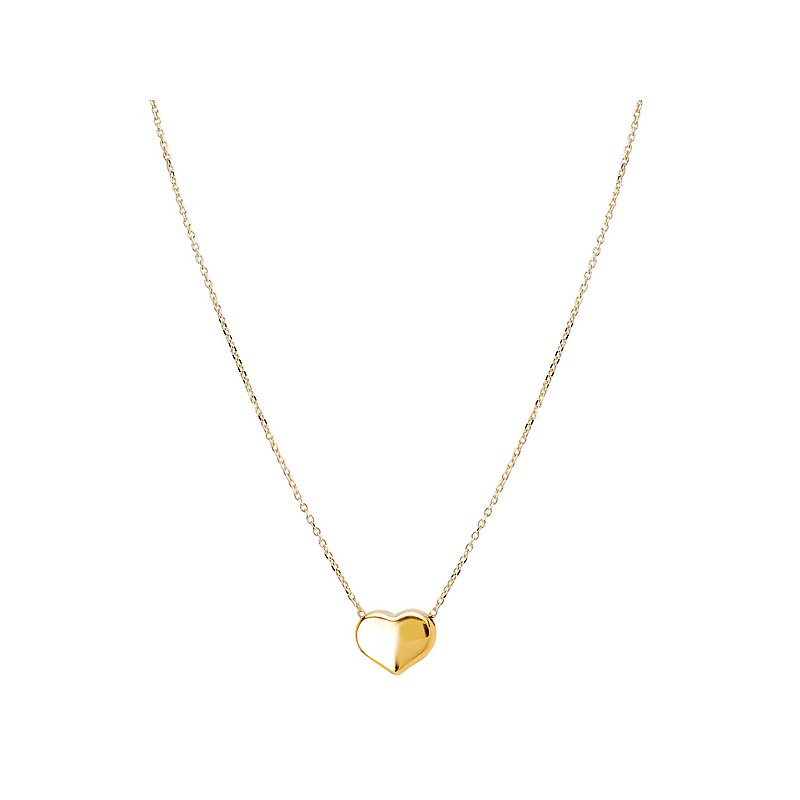 Italian 14kt yellow gold necklace features a 10x8mm sliding puffed heart. Chains extends from 16.75...