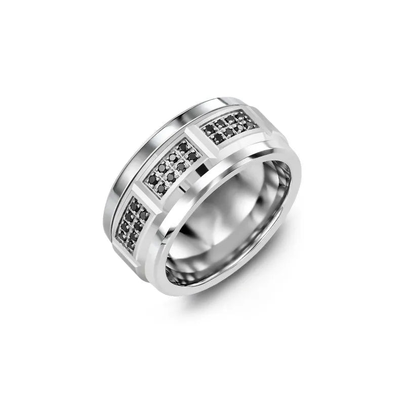 Wide Beveled Black Diamonds Wedding Band