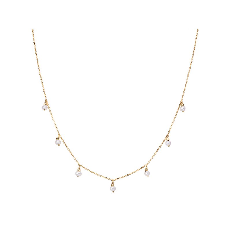 14kt yellow gold Italian necklace with dangling freshwater pearls. Adjusts 16-18.