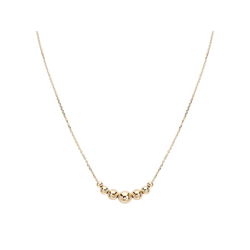 Italian 14kt yellow gold chain necklace is accented with 7 graduated sizes beads. Adjustable 16...