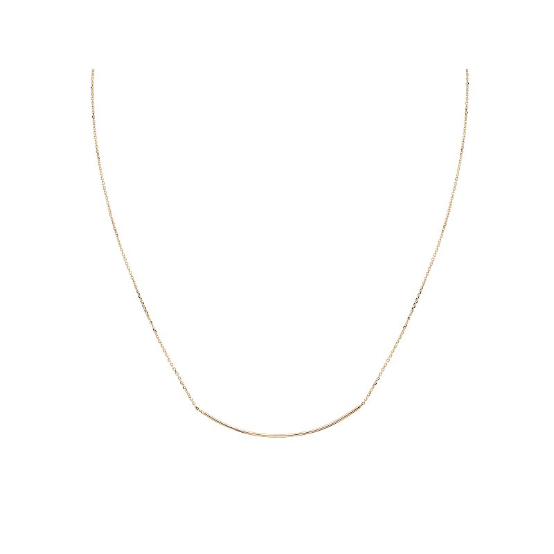 Italian 14kt yellow gold necklace features a 48mm curved bar detail. Adjustable 16 to 18...
