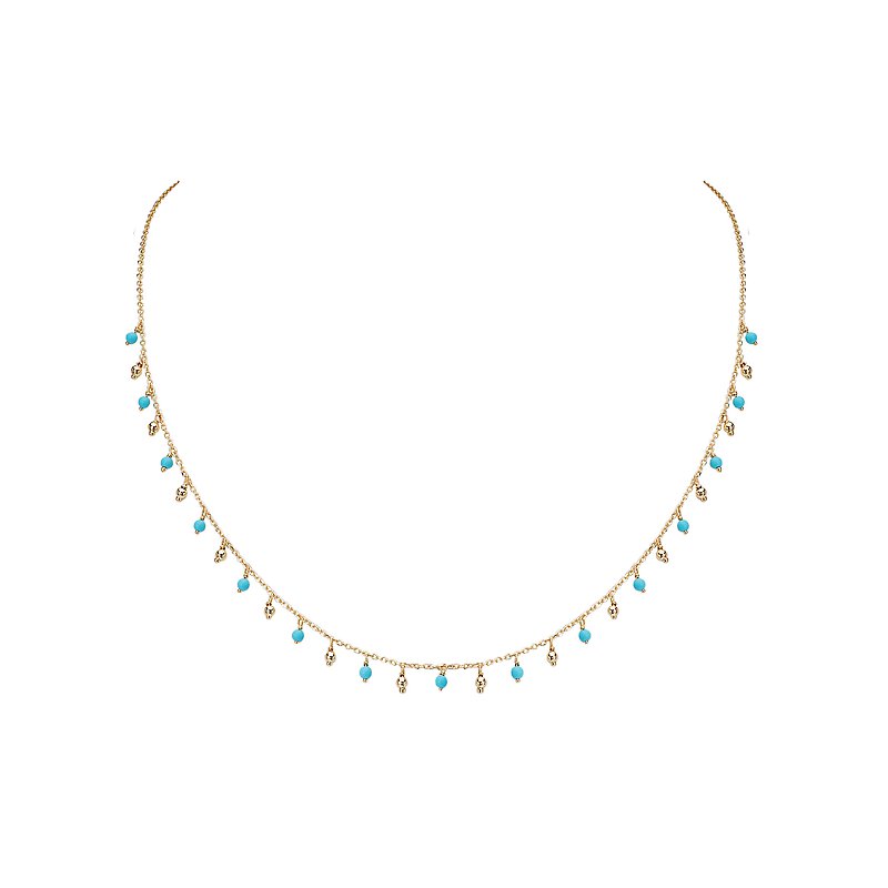 Italian 14kt yellow gold necklace with a fringe design created by alternating dangling turquoise and...