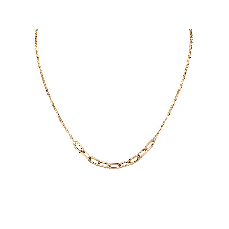 Italian 14kt yellow gold necklace features a double chain, centered with nine interlocking links. 18...