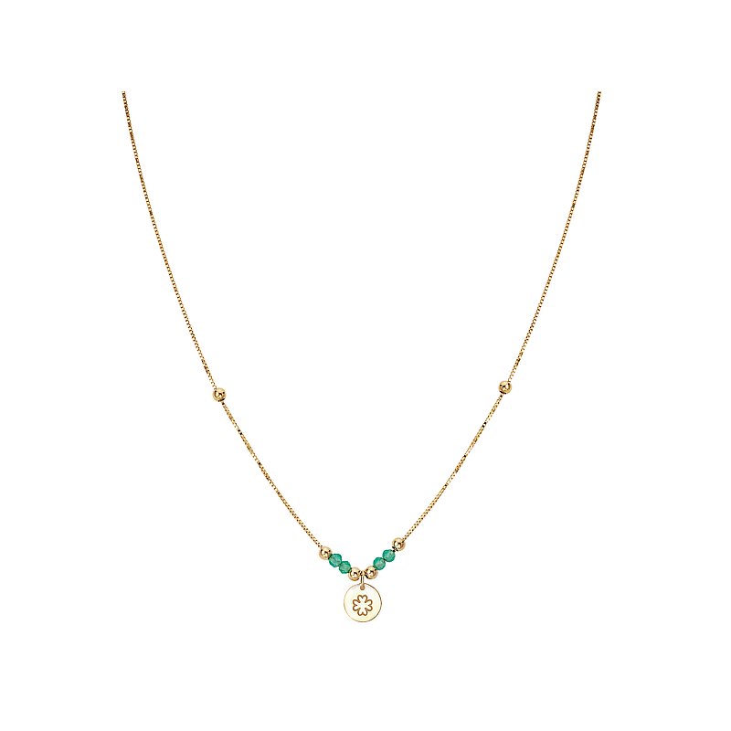 Italian 14kt gold necklace features a 12mm bezel set clover design inset with turquoise. Adjustable...