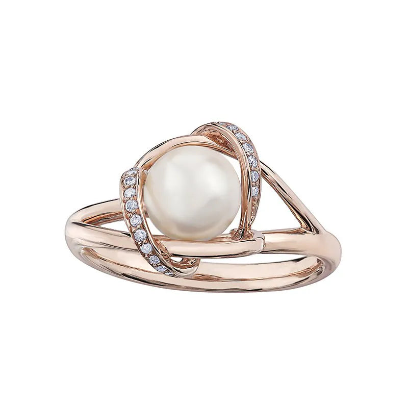 10 karat Canadian Certified Gold pearls ladies ring set with pearls and 0.07 carat total...