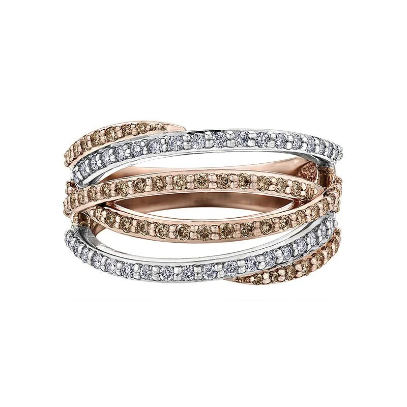 10 karat Canadian Certified Gold nat brown diamond ladies ring set with 0.65 carat total...