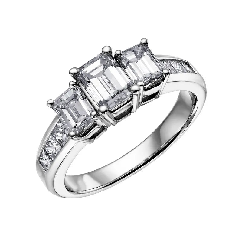 Pure White 18 karat Canadian Certified Gold emerald cut diamond ladies ring set with 1.50...