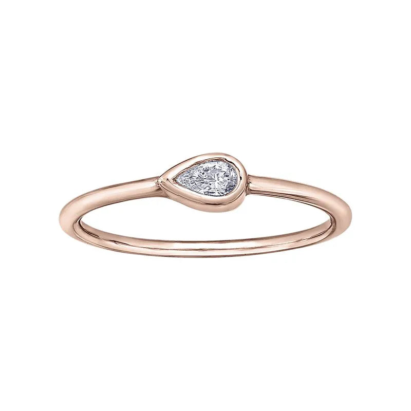 10 karat Canadian Certified Gold pear shape diamond ladies ring set with 0.10 carat diamond