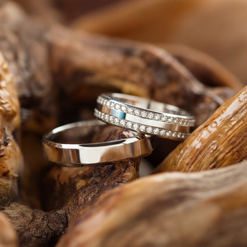 Titanium is a light, strong, and corrosion-resistant metal. Titanium offers you seven times the strength of platinum at about 1/3 of the weight. It is the hardest natural metal on earth and therefore offers more scratch resistance than gold or silver. In addition, titanium is also hypoallergenic. When ordering titanium rings, be extra sure about your ring size. The biggest drawback of titanium rings is that they cannot be sized by traditional ring sizing methods.