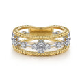 14K White and Yellow Gold Bujukan Diamond Easy Stackable Ladies Ring