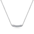 14K White Gold Curved Pavé Diamond Bar Necklace