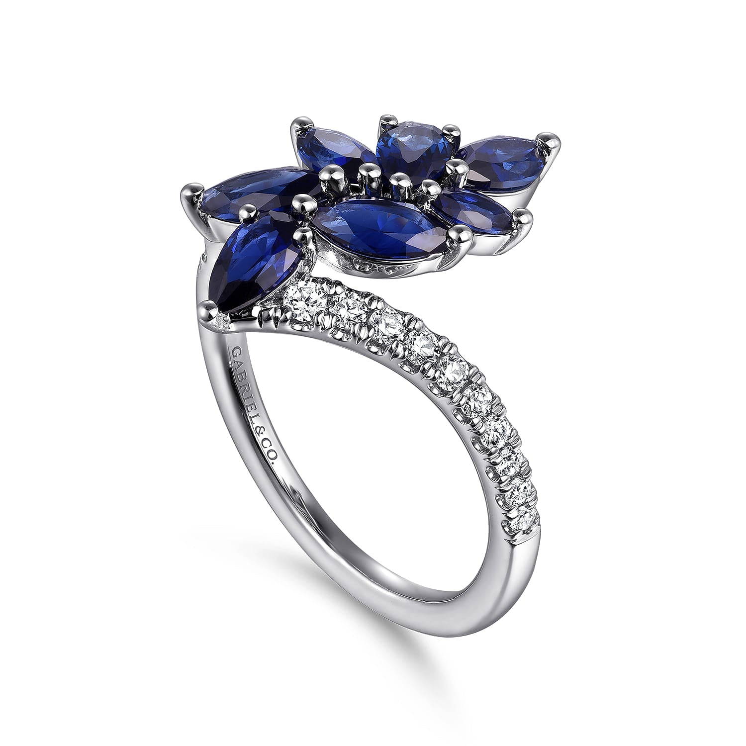 14K White Gold Diamond and Blue Sapphire Marquise Bypass Ring