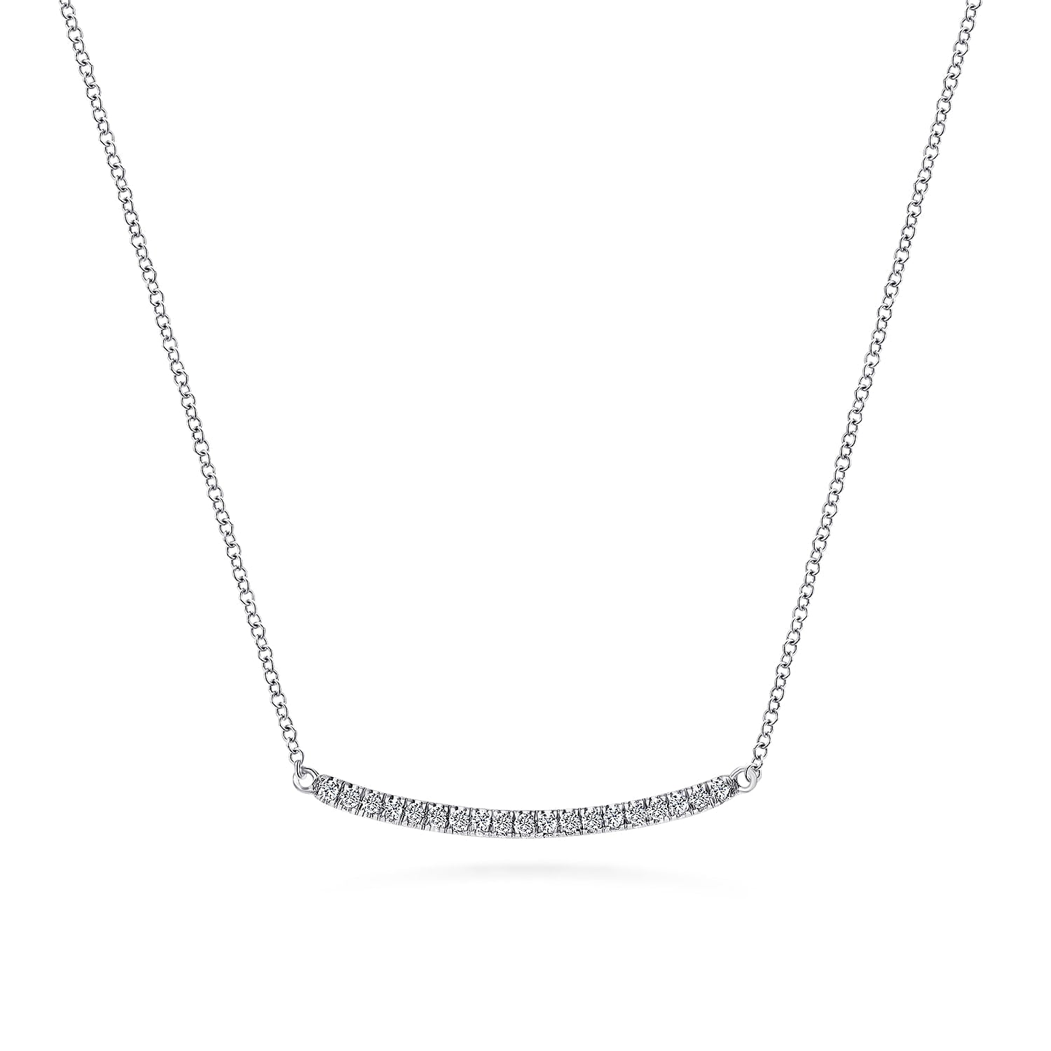 14K White Gold Diamond Pavé Curved Bar Necklace