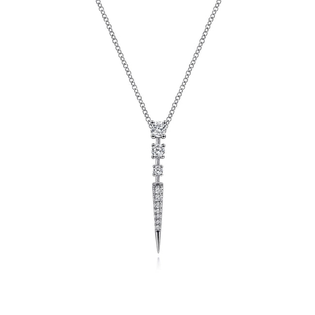 14K White Gold Diamond Spike Pendant Drop Necklace