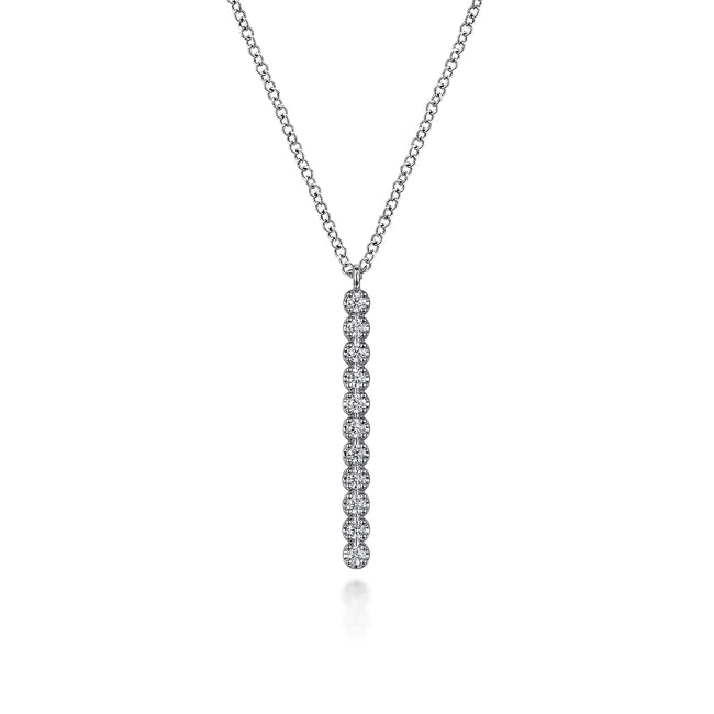 14K White Gold Diamond Vertical Bar Y Pendant Necklace