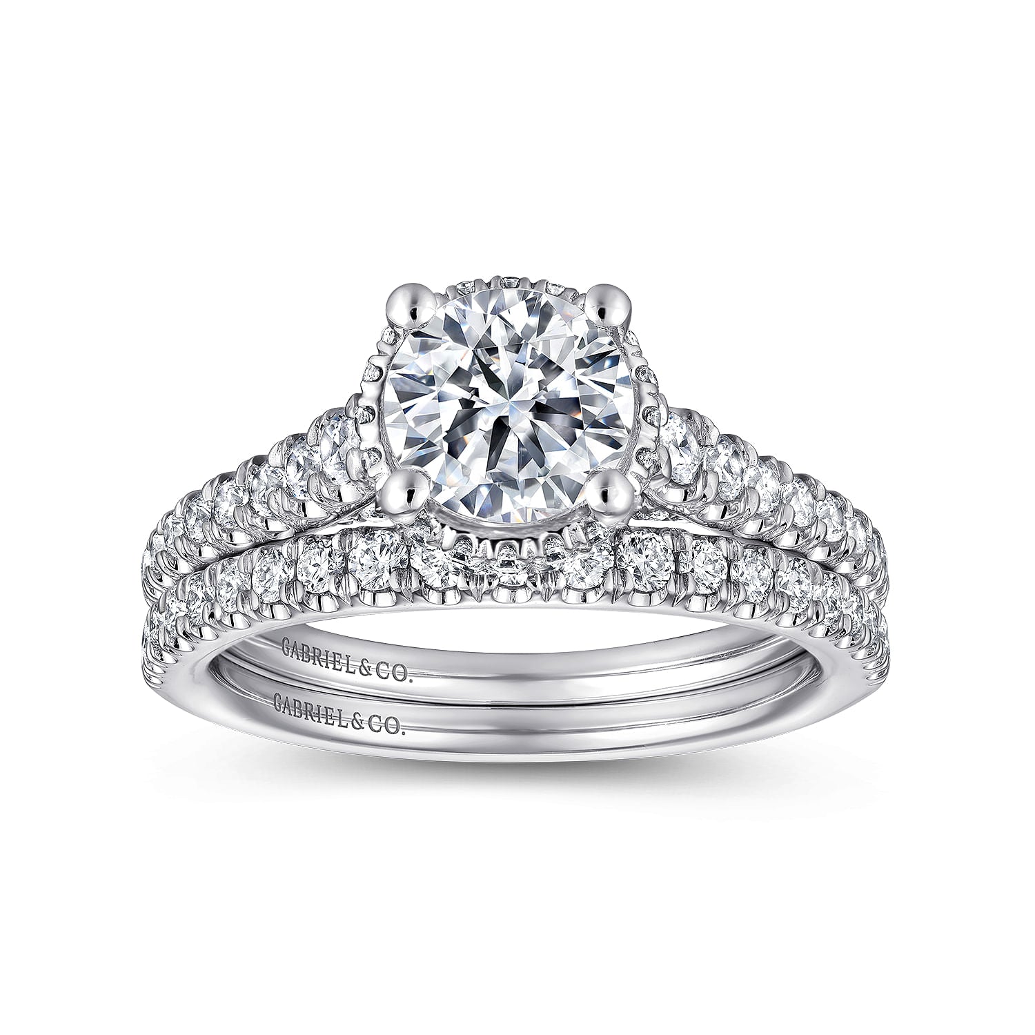 14K White Gold Hidden Halo Round Diamond Engagement Ring