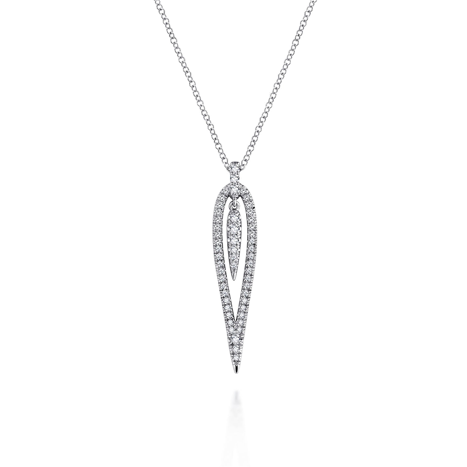 14K White Gold Open Teardrop Diamond Pendant Necklace