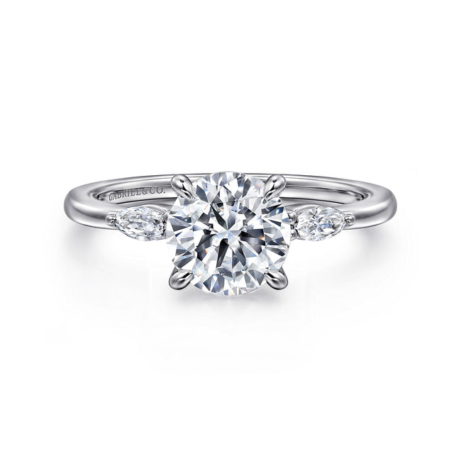 14K White Gold Round Three Stone Diamond Engagement Ring