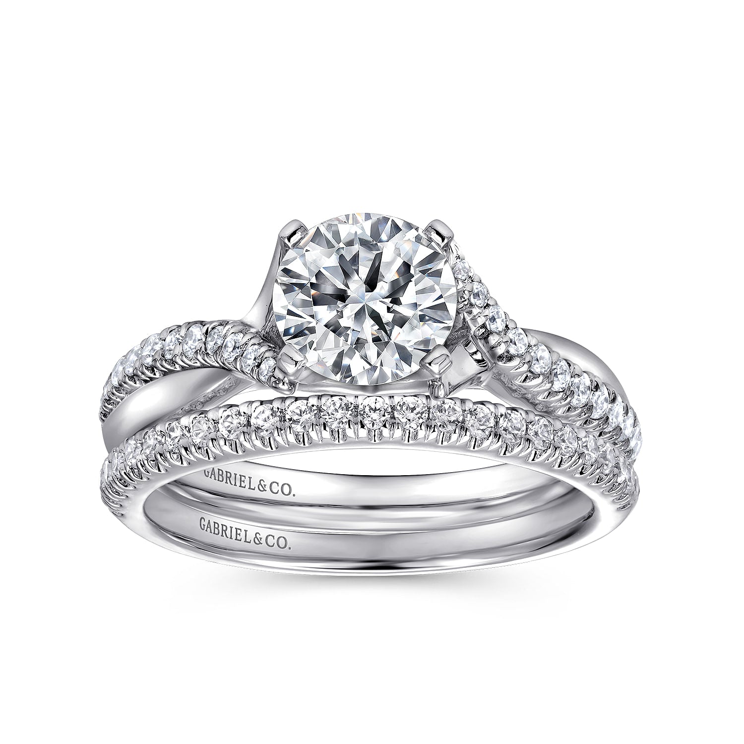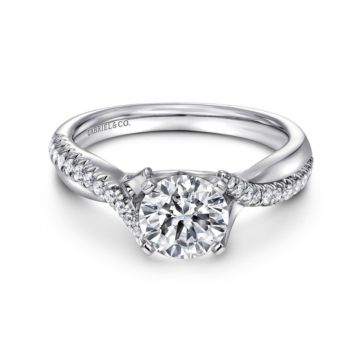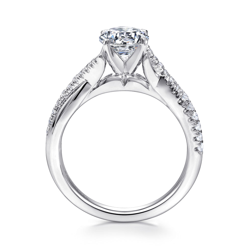 14K White Gold Round Twisted Diamond Engagement Ring