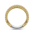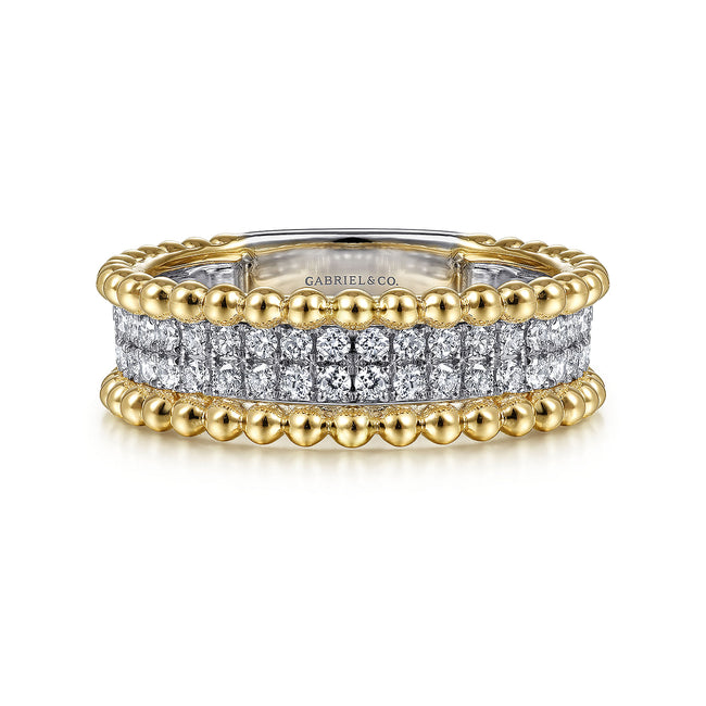 14K White-Yellow Gold Three Row Diamond and Bujukan Bead Ring