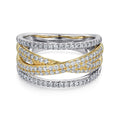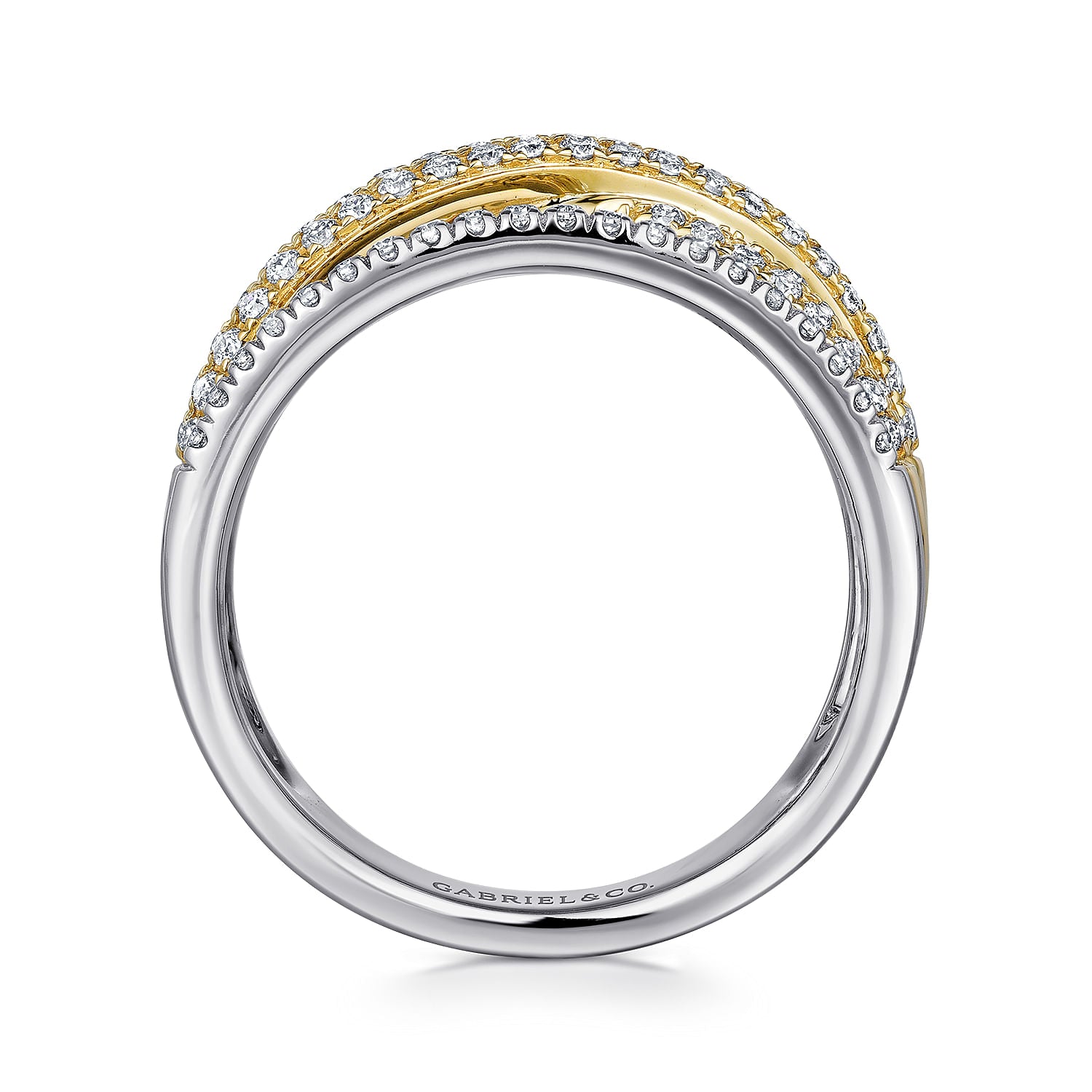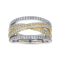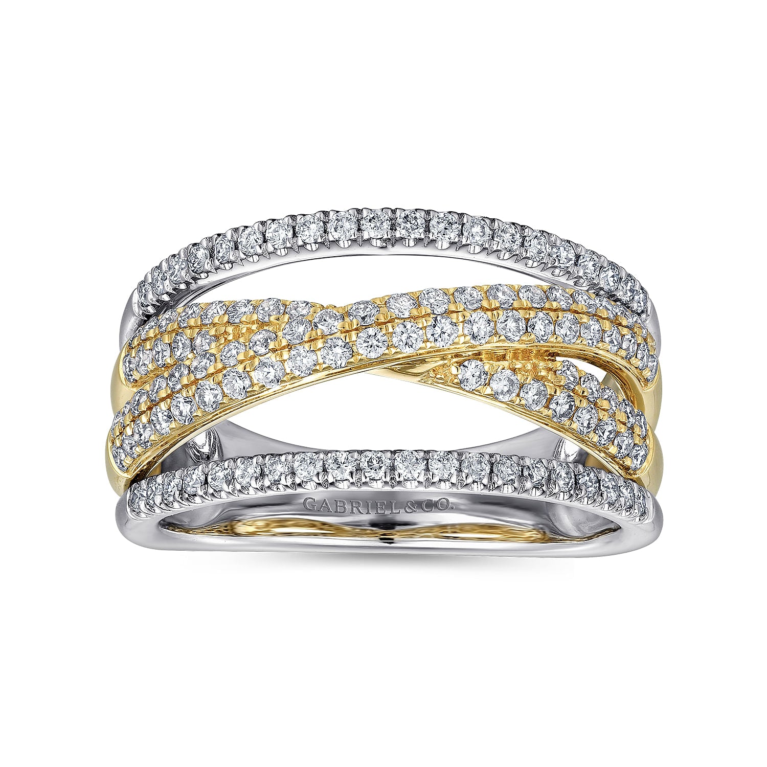 14K Yellow and White Gold Criss Crossing Multi Row Diamond Ring