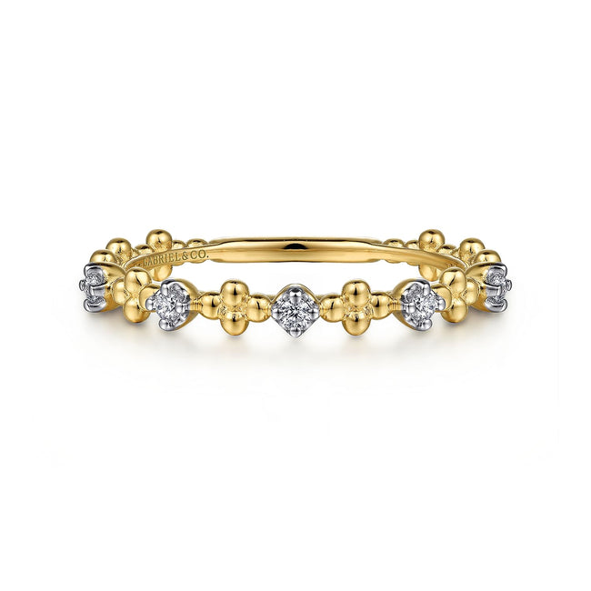 14K Yellow Gold Diamond and Bujukan Bead Station Stackable Ring