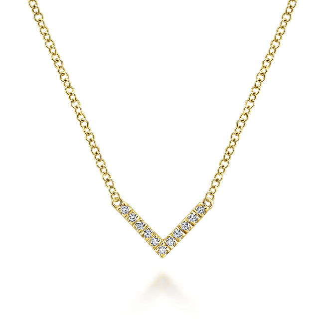 14K Yellow Gold Diamond Chevron Necklace