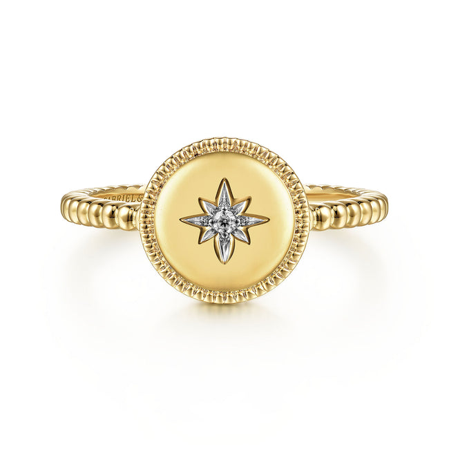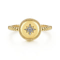 14K Yellow Gold Round Diamond Star Bujukan Signet Ring