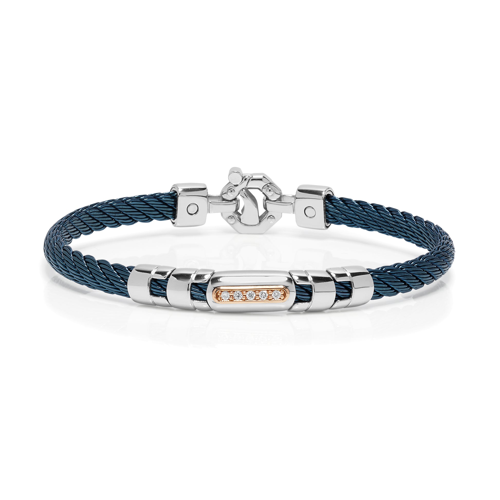 Bracelet. Rosè gold 750‰. Stainless steel. Blue PVD. White Diamonds P.Ct 10