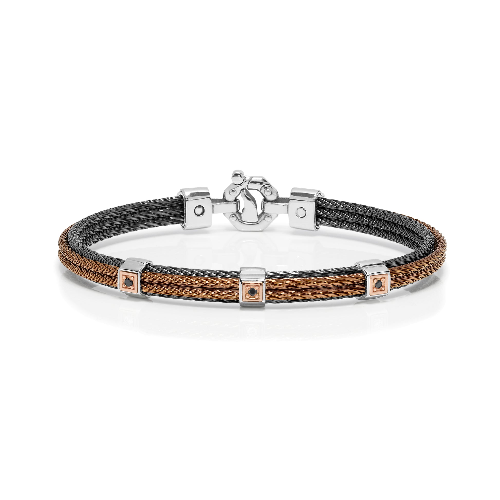 Bracelet. Rosè gold 750‰. Stainless steel. Black, Brown PVD. Black Diamonds P.Ct. 9. White Diamond P.Ct 2