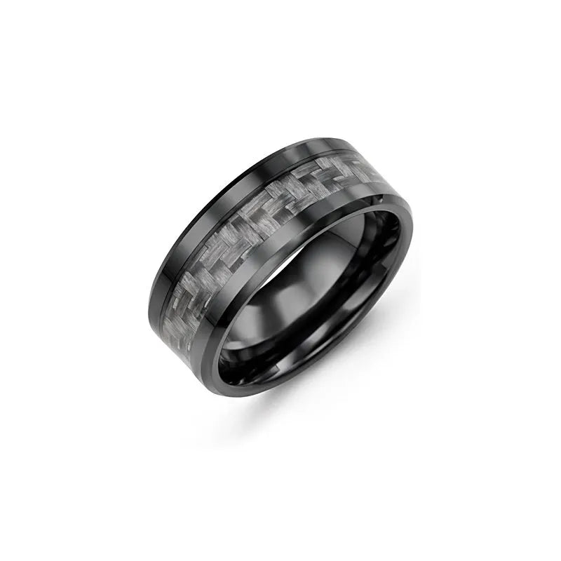 Beveled Carbon Fiber Ceramic Wedding Band