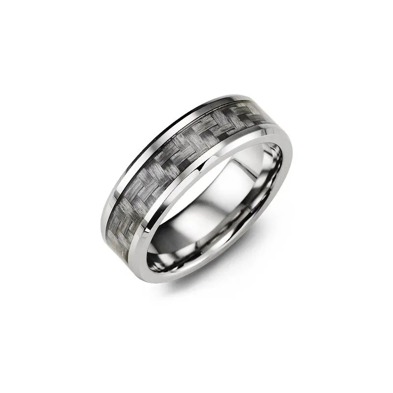 This unique 7mm men's ring is made from cobalt with an eye-catching woven carbon fiber pattern; guaranteed to turn heads. A masculine accessory that is based on a classic style, with a more modern approach. This would make a handsome wedding band or a gift for the man in your life.