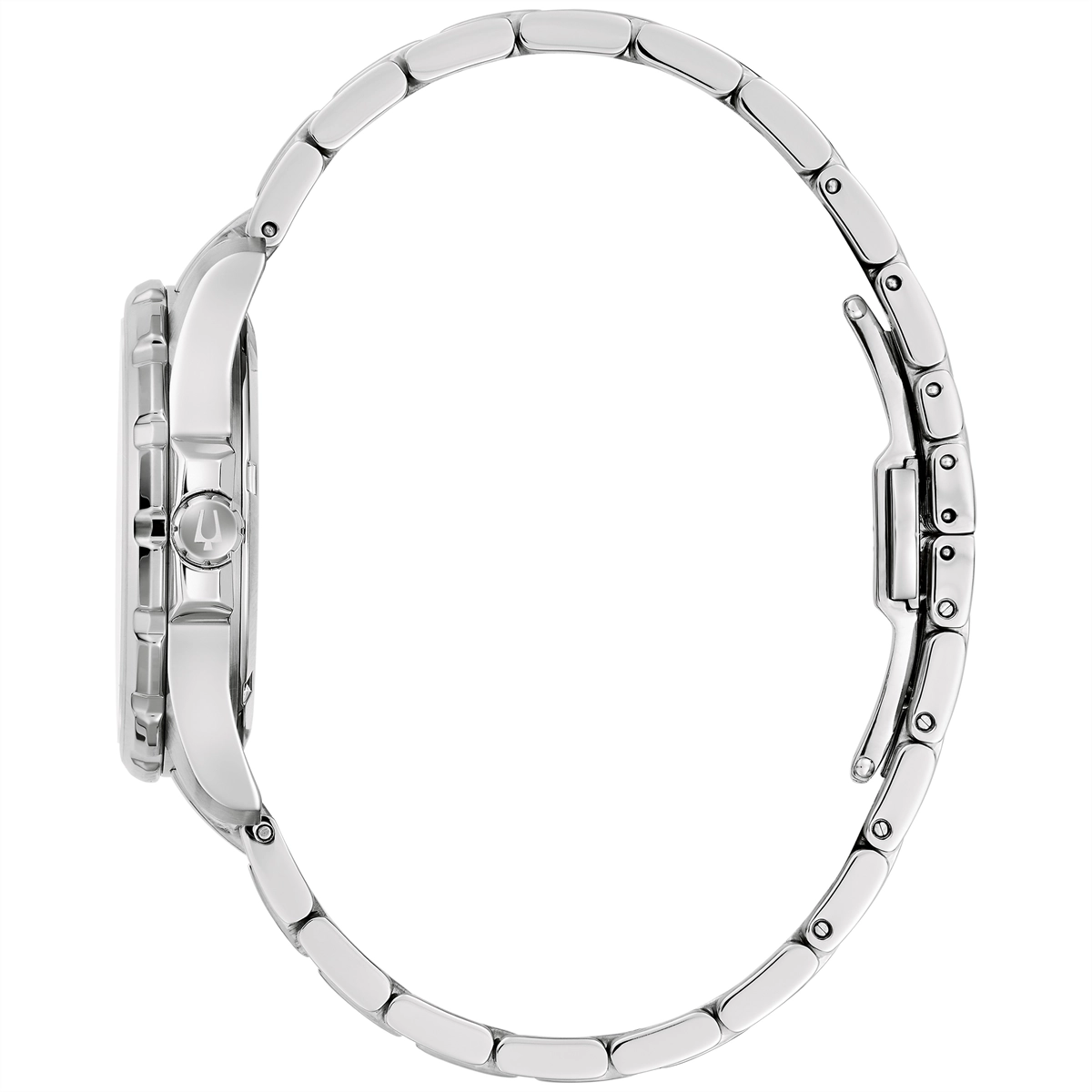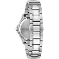 Bulova watch. Marine Star collection. 36mm case diameter. Stainless steel case and bracelet. Synthetic sapphire crystal. Blue dial. Diamond dial markers. Quartz movement.